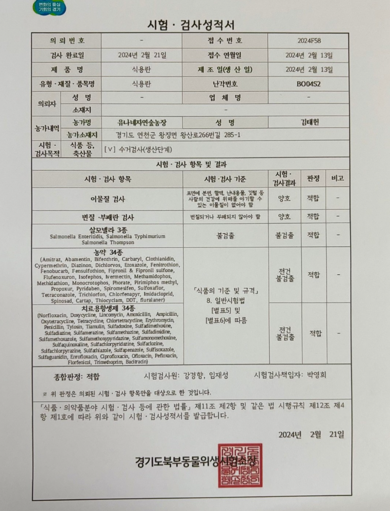 - 선별 기준: 전체 계란 중 60% 이내 선별, 특품이 섞일 수 있음