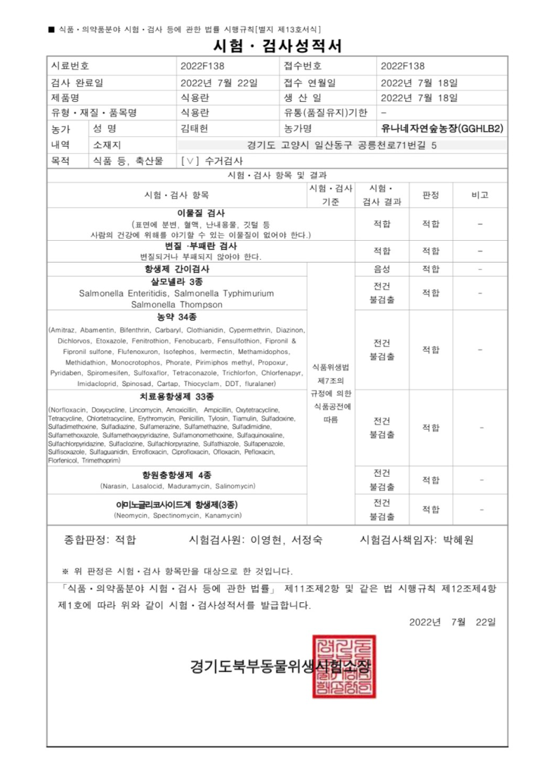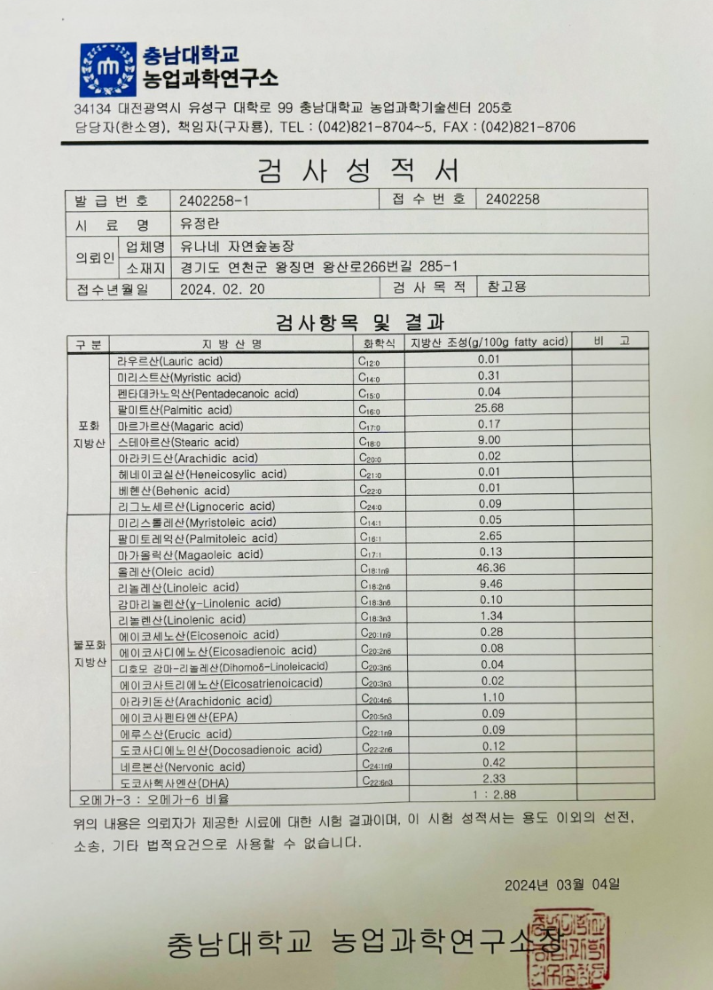 유나네 자연숲 농장에서는 인공수정을 하지 않고, 암탉과 수탉의 자연 교미로 생산된 유정란만을 사용합니다. 또한, 발송되는 모든 유정란은 당일에 낳은 신선한 계란만을 사용하여 최상의 맛과 품질을 보장합니다.