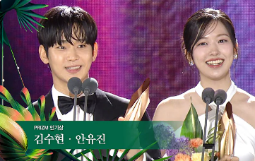 김수현과 안유진이 인기상을 수상했습니다. 김수현은 <눈물의 여왕>에서 그의 연기력을 여실히 보여주었고, 안유진은 <뿅뿅 지구오락실2>에서 눈부신 활약을 했습니다.