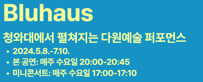 - 미니콘서트: 예약 없이 자유 관람 (단, 청와대 방문 예약자에 한함)