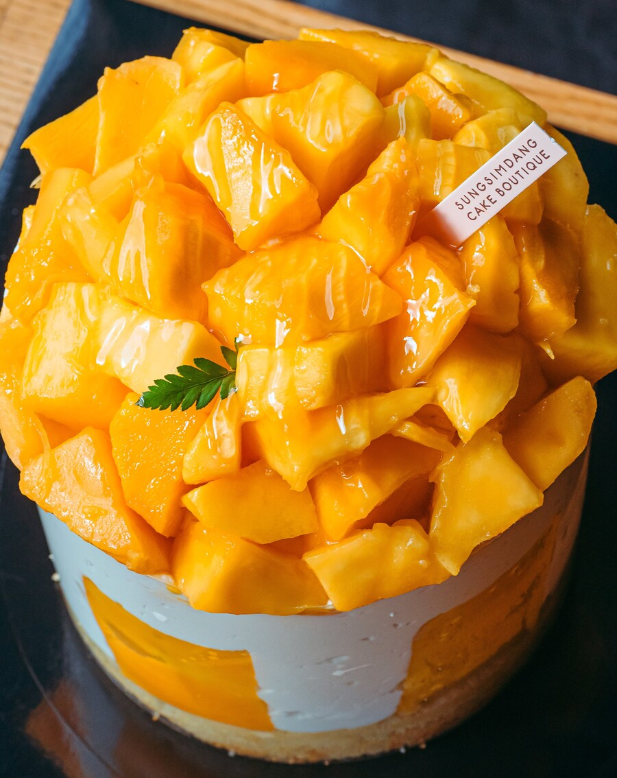 망고시루 케이크는 상큼하고 달콤한 망고를 가득 사용한 것이 특징입니다. 케이크 윗면은 물론, 시트 사이사이에도 풍부한 망고가 들어 있어 한 입 먹을 때마다 망고의 신선한 맛을 느낄 수 있습니다. 가격은 43,000원으로, 망고를 아낌없이 사용한 만큼 그 가치를 확실히 느낄 수 있는 케이크입니다.